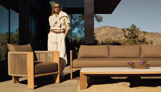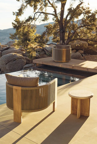 A nod to Sydney’s iconic Palm Beach with its stately coastal pines. Rounded backs, vertical rope detailing and a harmonious mix of materials infuse classic silhouettes with modern elegance. Transitional in spirit, the Palm Beach Teak Lounge Chair is a refreshing update to our signature classics—enjoy a luxuriously low seat cushion with a knife–edge back pillow on a supportive slatted suspension in the just–released colorway of Stone. The solid teak frame features vertically woven all–weather rope and plays with materials and form. In the back, a single leg adds style and interest, echoing the tripod construction of the collection’s chairs. Available in a swivel style, this comfort–driven piece seamlessly blends with many styles and in many outdoor spaces.