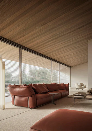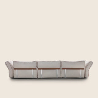 The extremely varied product range includes a number of elements of different width and depth, aimed at maximizing decor possibilities suited to the most diverse spaces. The backrest cushions feature generous proportions and enveloping goose-down padding – an invitation to sit back and relax.